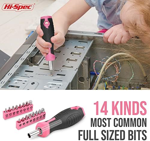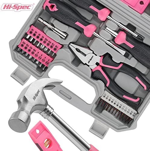 Hi-Spec 42pc Pink Household DIY Tool Set for Women. Home, Office and College Dorm Small Tool Kit of Starter Basic Ladies Tools
