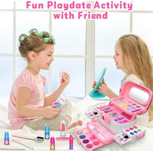 Has your little girl asked for her first makeup kit? Are you looking for a safe children's makeup kit for your child? We have prepared the makeup set with various colors and tools for you, containing almost all needed for makeup. Explore the endless pleasures of beauty with your little princess!