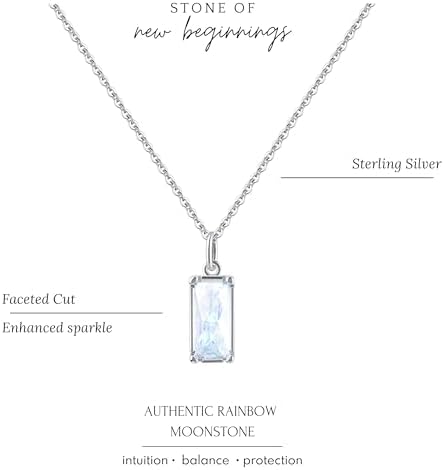 Brand, Seller, or Collection Name HOPE LOVE SHINE Metal stamp 925 Sterling Silver Metal Sterling Silver Material Sterling Silver and Moonstone Gem Type Moonstone Setting Bezel Chain Cable Clasp Spring Ring Model number B0B7GDM5667V