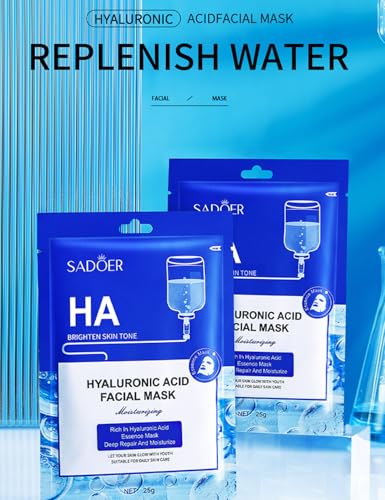 Hyaluronic Acid Essence 1 Sheet Mask - Intensively Hydrating & Instantly Soothing Anti-ageing Facial Mask with Rich in Hyaluronic AcidEssence - Beauty Mask For All Skin Care Types
