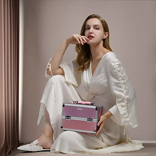 Joligrace Makeup Train Case Cosmetic Box Portable Makeup Case Organizer 2 Trays Makeup Storage with Mirror Locking for Cosmetologist Aesthetic Supplies Nail Tech Traveling Makeup Box Mermaid Pink