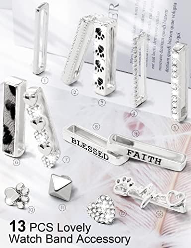 JR.DM 13 Pieces Silver Watch Band Charms with 10-Pcs Decorative Rings Loops & 3-Pcs Classic Clasp, Compatible with Apple Watch 38mm 40mm 41mm 42mm 44mm 45mm Metal Diamond Sliding Strap Accessories for