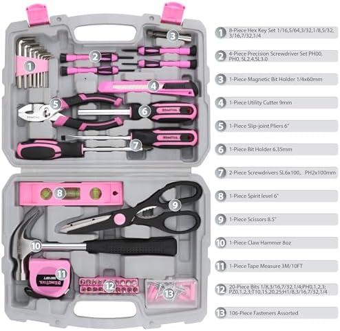 KingTool 149-Piece Pink Tool Kit - Basic Home Repair Tool Set, Small Tool Kit with Plastic Toolbox, Perfect for Women, Office & College Repairs
