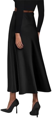 • KIRUNDO Women Flowy Skirt Soft Satin Flared Skirts