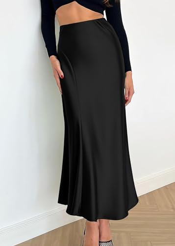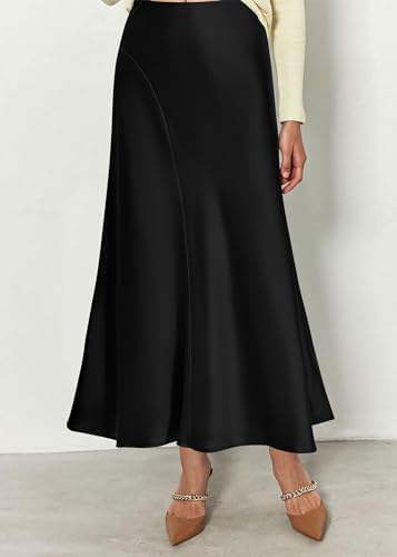 KIRUNDO Women's Satin Elastic High Waisted Maxi Skirt 2024 Trendy Summer Fall Winter Silk A-Line Casual Formal Work Skirts