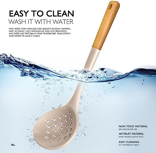Large Silicone Cooking Utensils Set - Heat Resistant Silicone Kitchen Utensils for Cooking w Wooden Handles, Spatula Set, Kitchen Utensil Gadgets Sets for Non-Stick Cookware, BPA Free (Khaki)