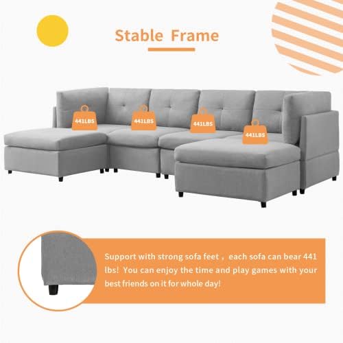 Comes with strong sofa feet that will support you firmly and ensure superior steadiness! You can enjoy entertainment and family interaction with your family or friends on our U shape sectional couch sofa without any worries.