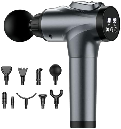 Massage Gun, Muscle Massage Gun for Athletes Handheld Electric Deep Tissue Back Massager, Percussion Massage Device for Pain Relief with 30 Speed Levels 9 Heads