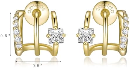 Obidos 14K Gold Plated Triple Huggie Illusion Stud Earrings | Double Huggie Hoop Earrings for One Hole | Gold Hoop Earrings for Women