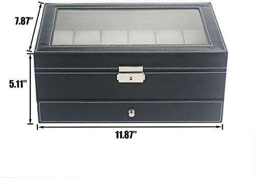 Ogrmar 12 Slot PU Leather Lockable Watch Storage Boxes, Men & Women Jewelry Display Drawer Case, 2-tier Organizer Watch Showcase with Glass Lid (Black)