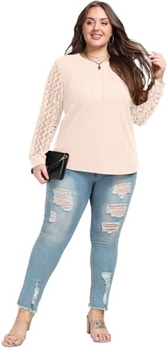 OLRIK Plus Size Tops For Women Lace Shirts Long Sleeve Blouse
