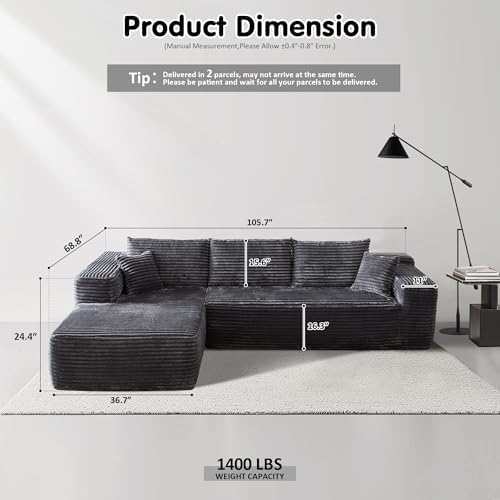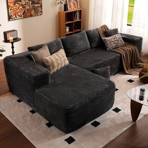 ovios 104" Cloud Sectional Couch with L-Shape Chaise,Modern Modular Sofa with Deep Seat, Upholstered Couches for Living Room Bedroom,No Assembly Required, Grey (Plush Corduroy Fabric)