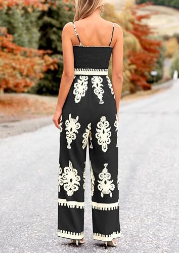 PRETTYGARDEN Women's Summer Boho Jumpsuits One Piece Beach Vacation Outfits Spaghetti Strap Wide Leg Pants Rompers