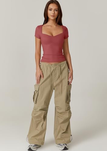 QINSEN Womens Sweetheart Neck Short Sleeve T Shirts Slim Fit Basic Tee Trendy Crop Top