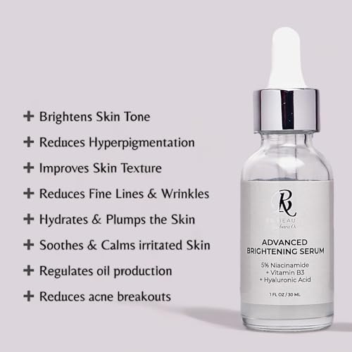 RB Beauty Advanced Brightening Serum - Niacinamide - Vitamin B3, Multi-Action Face Serum to Hydrate and Improve Skin Complexion, Minimize Large Pores. 2 bottles of 1oz each