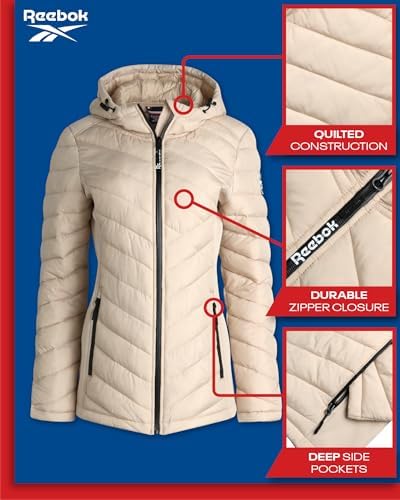 Reebok Women's Jacket - Lightweight Quilted Puffer Parka Coat with Flex Stretch Panels – Casual Jacket for Women (S-XL)