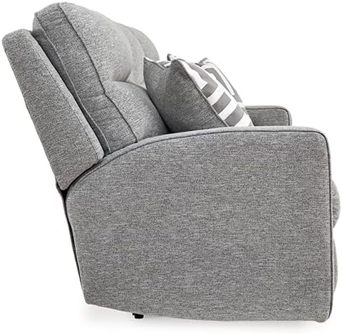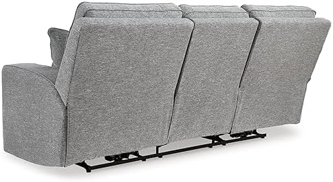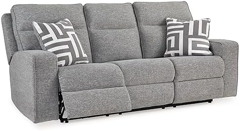 If style is the question, then this power reclining sofa is the answer. Its clean-lined profile is beautifully contemporary. High-performance fabric and plump cushioning make it so easy to comfortably kick up your heels. The adjustable Easy View headrest allows a primo view of the TV, and the extended ottoman provides extra room to really stretch out. Simply sit back, chill out and recline away—this sofa is designed to be your favorite seat in the house.