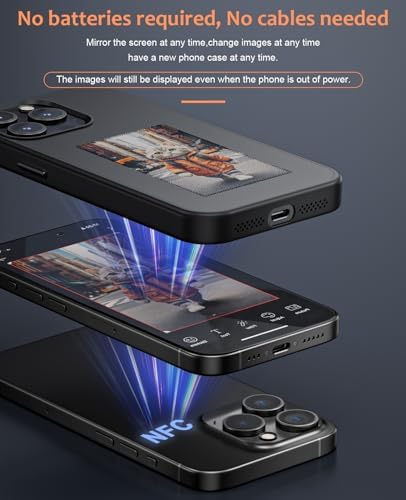 kosprie E Ink Phone Case,Smart DIY 3-Color Electronic Ink Screen Phone Case,Can Display Image 3.5inch On Ink Phone Case,Smart NFC Phone Case Photo for iPhone 15 PRO Max(Black)dummy