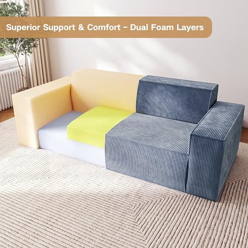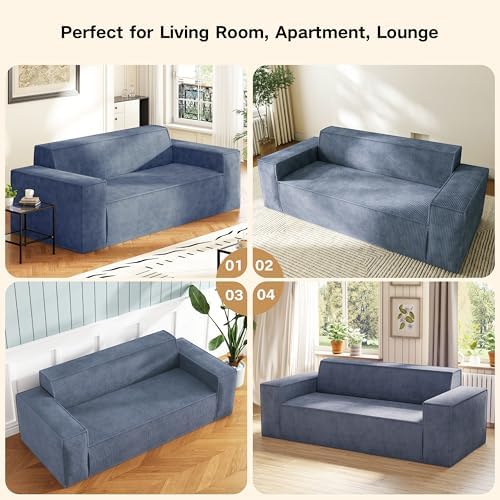 Things I like about this couch from the first week of having it!1. Very comfortable. Because it has springs and memory foam like a bed, it's very comfortable.2. Oversized arm rests! Ideal for resting your arm with your ipad. Our dog also loves to sit on the arms.3. No "cracks in the couch". We used to lose things in the couch all the time. This is seamless and there are no removable cushions so no "cracks" to lose stuff in.4. Soft fabric! Feels very soft but also seems durable.5. No "legs". It sits right on the ground so it's very stable. We got rid of our last couch because of a broken leg/frame. Won't have that problem with this one!Cons (room for improvement)1. It was marketed as a three seater and could fit three ppl if they were smaller people. A lot of the length is the wide arm rests so the actual length of the sitting portion is a bit snug. I'm 5'9" and I cannot lay down on this with my legs extended. I would like and even longer version!2. Back headrest height. It's a bit short in the back our dog loves it but it provides no head rest to someone sitting in it.