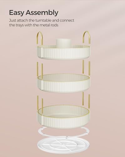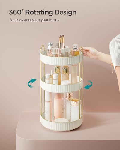 SONGMICS Makeup Organizer, 3-Tier Round Rotating Skincare Organizer Countertop, Customizable, Toiletries Vanity Organizer, Lazy Susan, Christmas Gift, Cloud White UJKA011W01