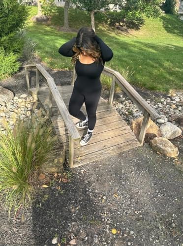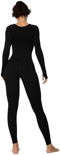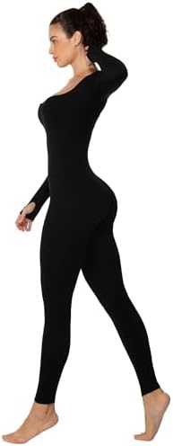 Sunzel Long Sleeve Bodysuits One Piece Jumpsuit for Women with Square Neck and Butt Scrunch Leggings Seamless Ribbed Rompers
