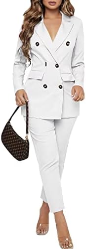 - Features: solid color, fashion notched neckline, decorative pockets, double breasted button, long sleeve blazer jacket, high waist pencil legging pants