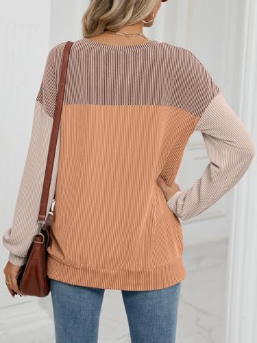 Long Sleeve Shirts for Women 2024 Color Block Crewneck Loose Pullover Tops