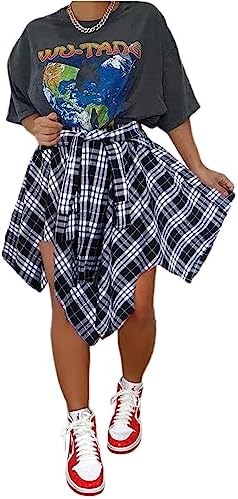 Skorts Skirts for Women - Midi Summer Casual High Waisted Plaid Asymetrical Skirt with Shorts Underneath This summer skirts is made by stretchy fabric which is durable, comfortable and looks expensive. { Skirt Features}: 1.High waist with elastic band 2.Tie front 3.Pleated ruffle design 4.Asymetrical hemline 5.Fashion plaid Patterns 6.Midi length { Fabric Features}: 1.Material: Polyester + spandex. 2.Fabric that does not wrinkle easily; 3.Moisture absorption, moisture retention; 4.Good ductility, fluffy touch. { Size Recommended }: S(US 2-4)/M(US 6-8)/L(US 10-12)/XL(US 14-16)/XXL(US 18-20) If you are in between size, please size up.