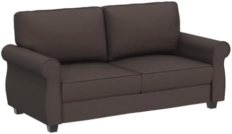 We have a sitting room that needed something. So, we bought this couch. Color is great (brown) easy assembly, comfortable. Doesn’t get a lot of use, so can’t say how it would be with using everyday. Also, we got longer legs for it, it was very close to ground.